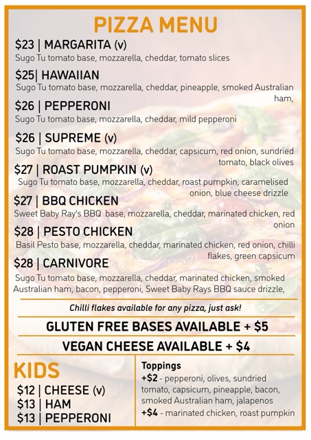 Freshly prepared and award-winning, our pizzas have become the talk of the town. Our pizza bases are made using a premium artisan sourdough recipe, slow-fermented for 72 hours, then individually hand-stretched and stone-baked. Pair that with plenty of flavoursome sauce; classic tomato, smokey BBQ or green pesto, there is something to suit everyone. For the last few years, our customers have voted our pizzas as being the best pizza Birkdale. We also offer a smaller base for the kids, or if you fancy a smaller pizza. All pizzas are customisable too. Just let us know what you love! We also run Pizza Birkdale Specials every Thursday – get the best pizzas in town for only $19!