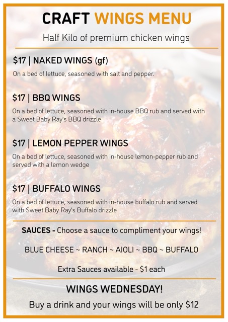 Look out for Wings Wednesday, every Wednesday night our wings are reduced to just $12 per portion.
